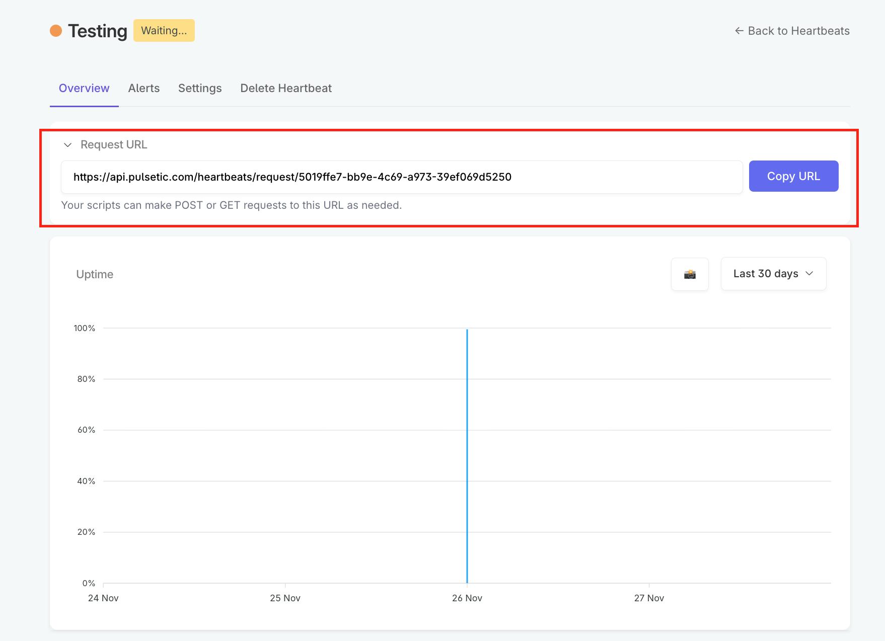 Setting up a heartbeat is the first step in ensuring that your internal or scheduled tasks run on time. You define the expected frequency and grace period, and Pulsetic provides a unique URL that your script must "ping" upon successful completion.
