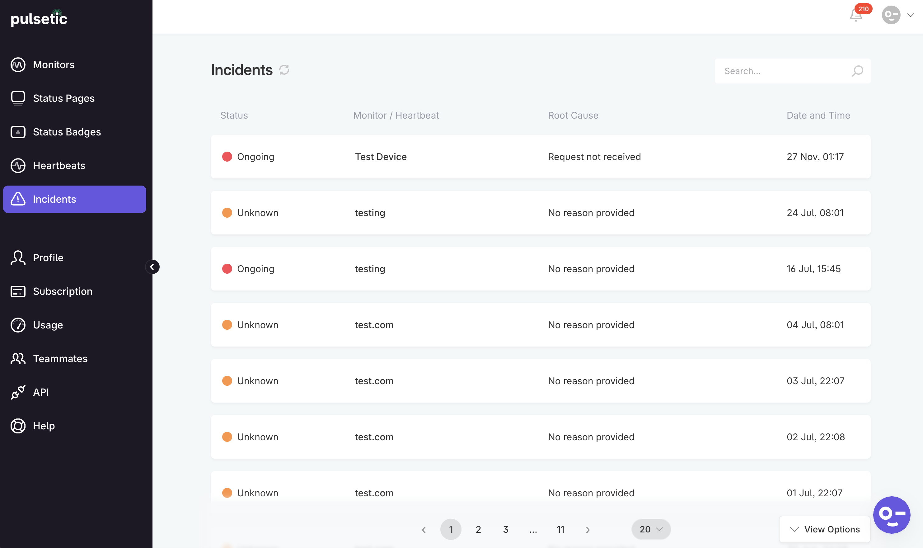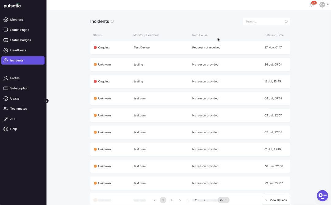 - Date and Time: The precise time the incident was first detected by Pulsetic.